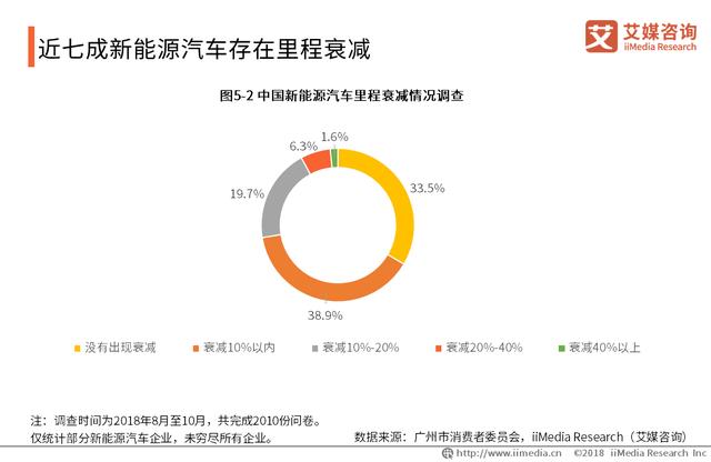 不过,新能源汽车发展仍存在完善空间。根据此前艾媒咨询对中国新能源汽车部分受访车主的调查发现,在不同的购买时间,有近七成车主表示新能源汽车出现不同程度的里程衰减。电池的衰减与行驶里程和温度有关。一是行驶里程越长,充电次数越多,衰减越大;二是温度越高,衰减越大。此外,据媒体报道,车主实际用车时续航里程与购车时部分商家宣传不符,也是车主感到出现续航衰减的原因之一。