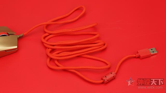 线材方面采用UltraWeave超软线材,使用橙色编织表层包裹。线材长度约为1.8米,线材十分柔软,编织表层也为线材带来更好的耐用性,UltraWeave超软线材能确保鼠标在使用的时能够将线材带来的摩擦阻力以及拖拽感降至最低,带来更为流畅的使用体验。线材上也配备了抗干扰磁环,来减少电磁干扰对于鼠标使用的影响。