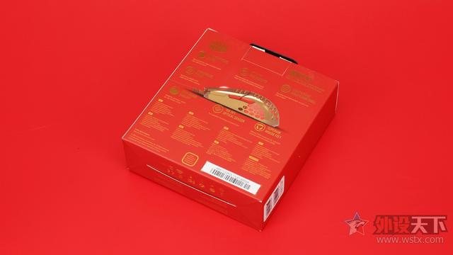 酷冷至尊MM711鼠年限定版游戏鼠标外包装采用了红配金,红色的包装底色上采用金色文字、标识进行点缀,红色的高调明媚,搭配金色的奢华耀眼,也让包装看起来更加高贵典雅。包装正面整体设计依旧延续了普通版MM711游戏鼠标的设计方案,包装正面展示了产品实物、产品型号、特点等信息,包装背面则是采用多国语言的形式向玩家介绍了产品特点。