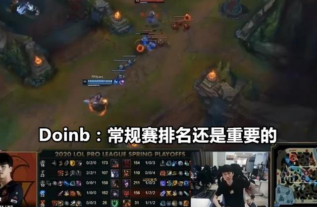 Doinb打完与EDG的比赛后,在直播中说觉得常规赛的输赢还是很重要,不仅是为了能晋级季后赛,更重要的是常规赛排名,排名高的就会少打一两场比赛,比如IG和JDG,少打一两场比赛的好处是什么呢?就是BP更好做,多打一小局BP都会很亏很亏。