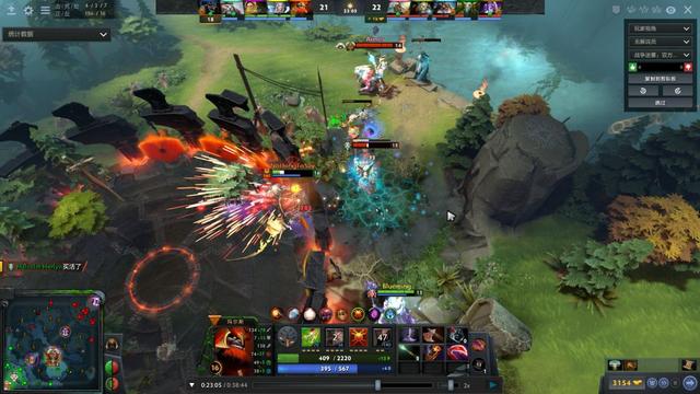 22:50的时候火枪出到A帐。可以看到此时双方人后21:22,还是非常胶着的。自从火枪出到了A帐,夜宴的团战就比较一边倒了,一直从21:22打到了25:43。