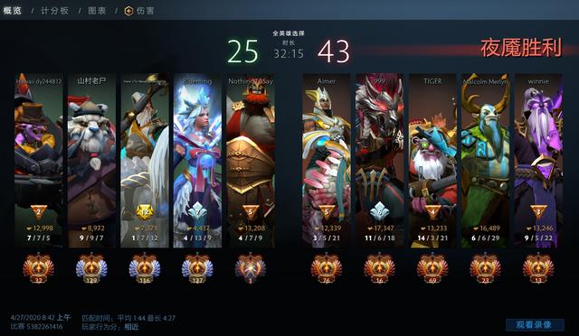 20分钟天辉一共19个人头,火枪参与了13个。而且因为火枪一直积极守塔,上路和中路的一塔都没掉。