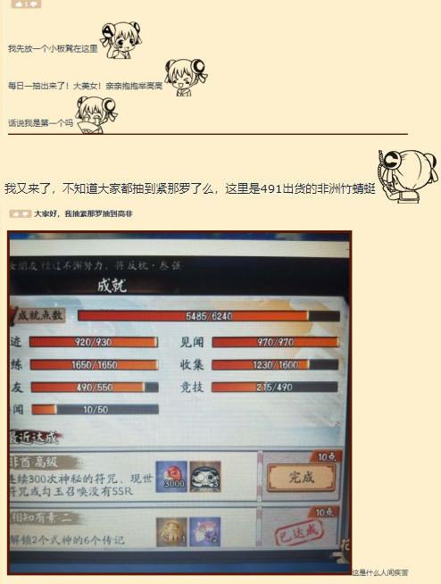 而与此同时,也有玩家在阴阳师的官方贴吧里,发出了自己的“战绩贴”,询问自己350抽得到了紧那罗,水平如何。帖子下面有很多人回复,而从回复的情况来看,此次的活动也是有人欢喜有人忧啊!有的人三百多抽才抽到了紧那罗,而有的人四十抽便抽到了,更有甚者单抽一张就抽到了紧那罗,可谓是欧气爆棚!